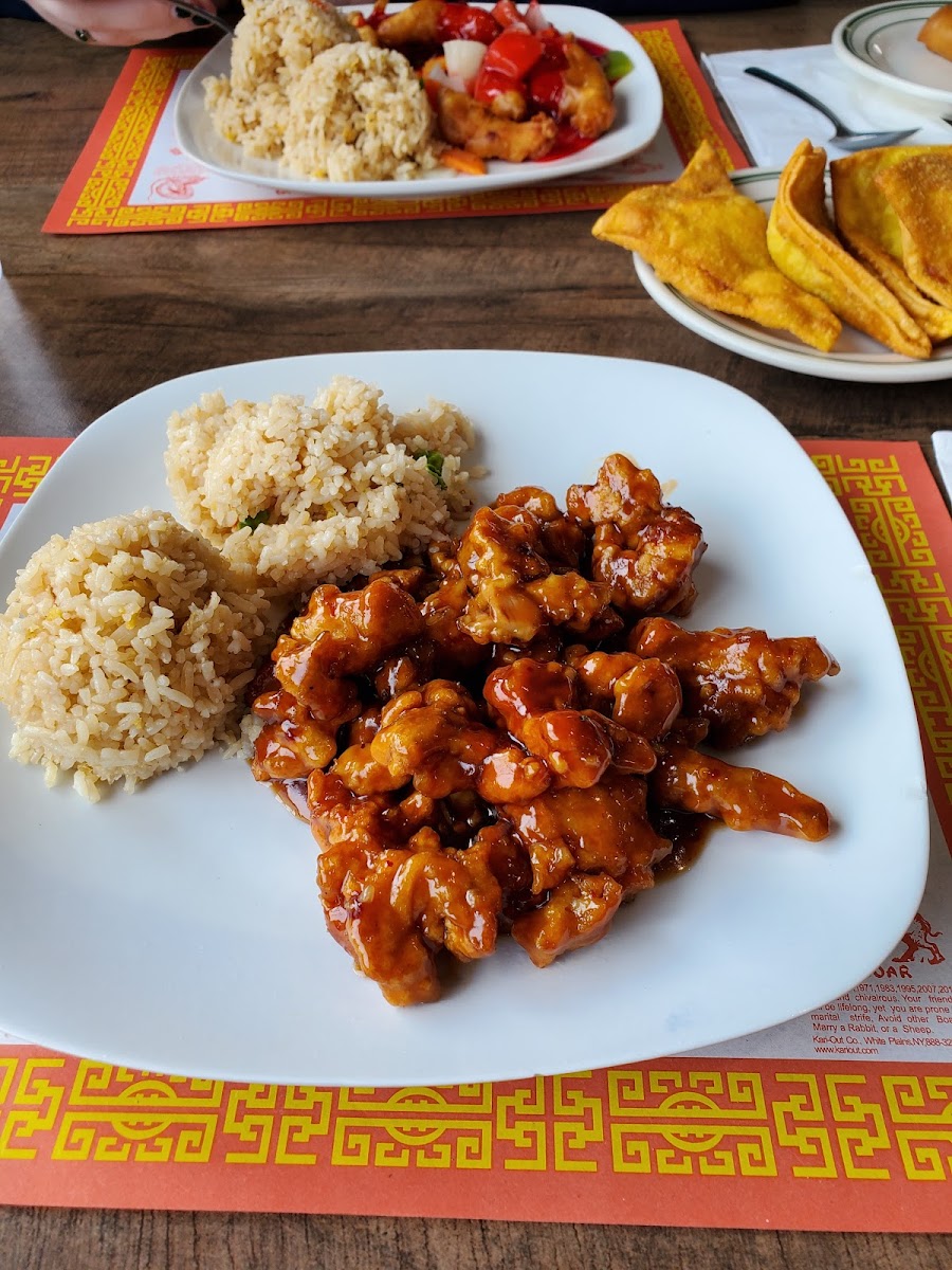 I tried China chef for the first time today, and I was thoroughly impressed. I got delivery and paid with card over the phone, it was quick and easy. They estimated a 45 minute wait time but I got the food delivered to my door in almost exactly 20 minutes. I normally have issues with doordashers and uber drivers finding my apartment but they had no issue finding where I live. The delivery driver was very polite and professional. I ordered the lunch special orange chicken plate, rangoons, and egg rolls. The food was still hot when I got it, and the egg rolls and rangoons still crisp. They gave me plenty of sweet and sour sauce, and portion sizes for all items were very generous. The orange chicken was good, very saucy and a good kick to the orange sauce. I will add that it was actually brought to me hot enough to where I had to let it cool down for a bit (which is a positive). The rangoons were great, not too sweet, crisp, and with a good amount of filling. They’re large too, not like the small Rangoons you get from Tsing Tsao or Panda Express. The eggrolls were VERY good, probably the best part of the meal. Crispy, and one of the best eggrolls I’ve had. The best balance between veggies and meat. Overall good pricing too, I paid less than I would on DoorDash for Chinese food— and got more food while paying less. So I’m happy, my husband ate his whole plate in less than 5 minutes and we thoroughly enjoyed it.